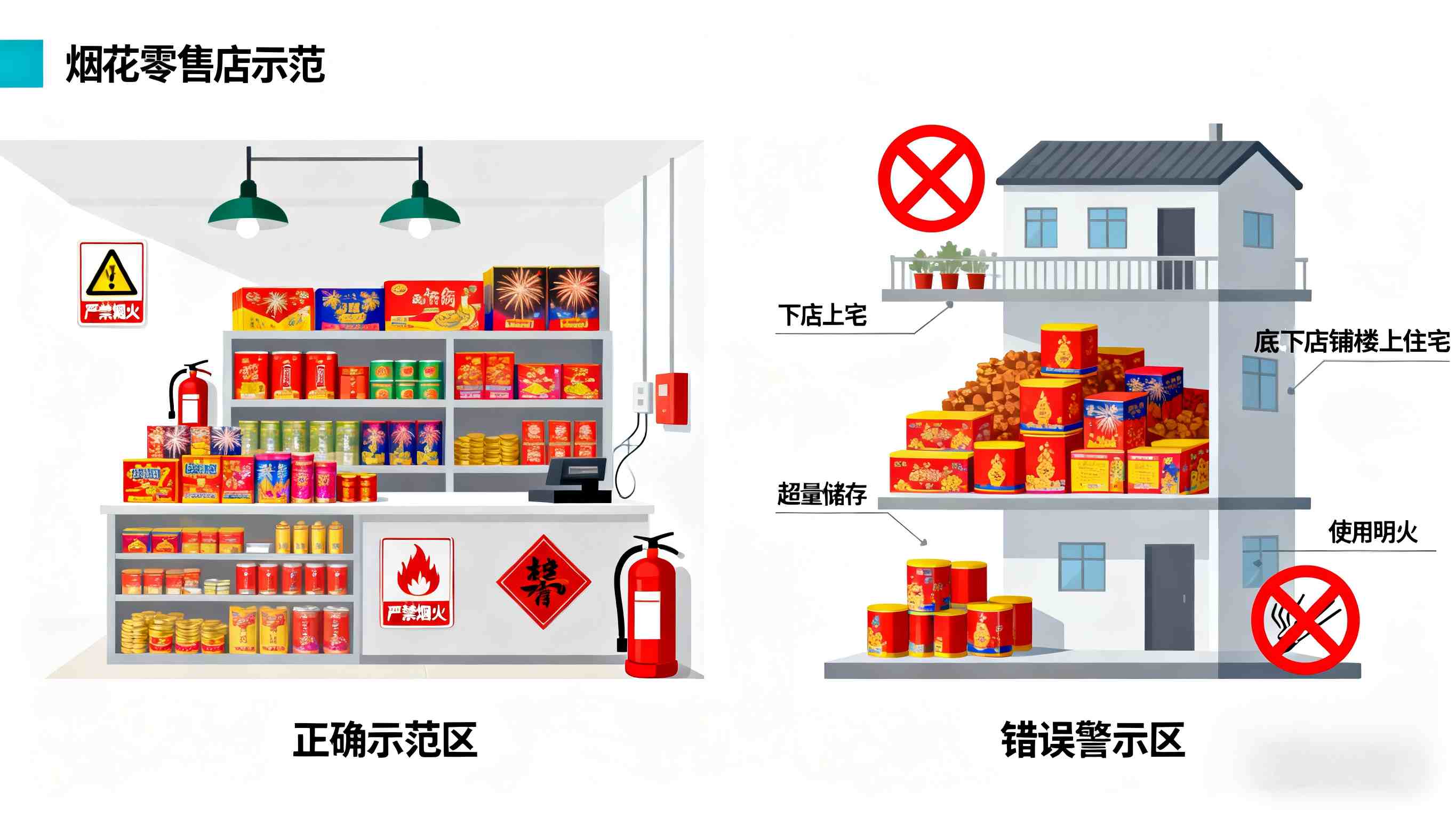 不在店内使用明火,不超许可范围、超核定数量销售或储存烟花爆竹产品。